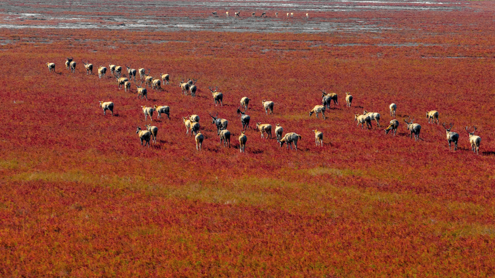 Jiangsu: Rothirsch-Herbstidyll