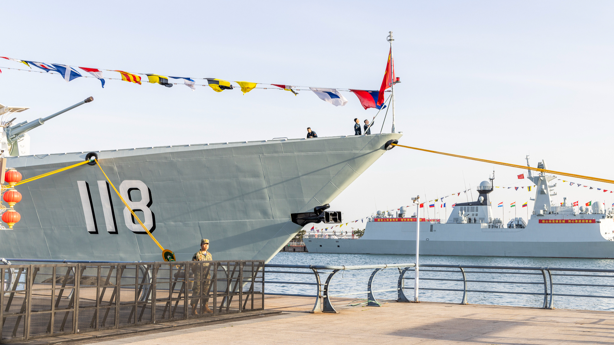 Hochmoderner Lenkwaffenzerstörer der Marine der VBA feiert in Shandong sein öffentliches Debüt