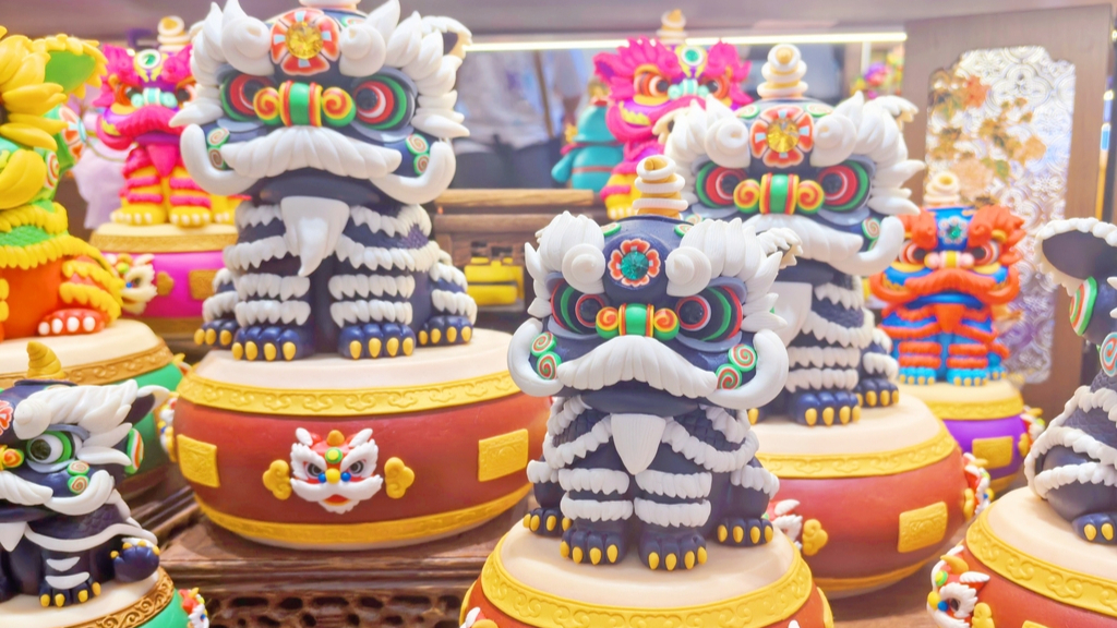 Guangzhou: Tradition trifft auf moderne Kreativität – Löwenfigur im Einkaufszentrum